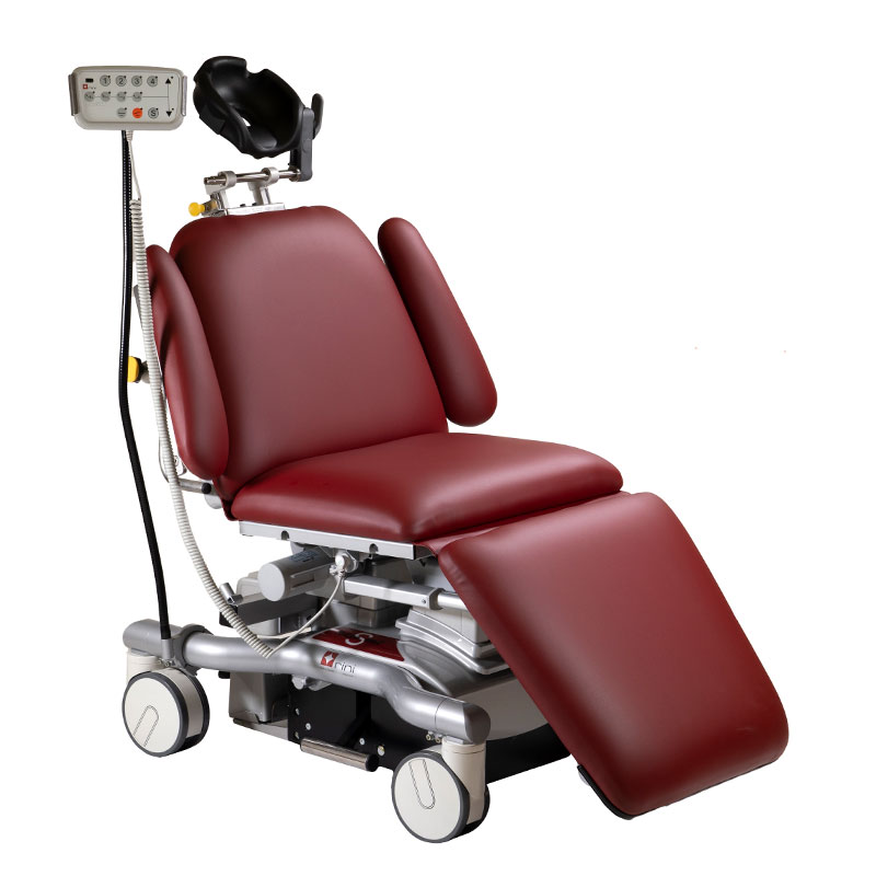 - Schnelle und sichere Positionierung des Patienten mit der patentierten ”HandsFree”-Kopfstütze
