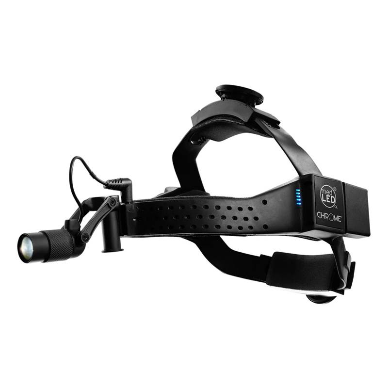 Die Stirnlampe Chrome MC3 bietet ein Maximum an Bequemlichkeit an und beugt Nackenschmerzen vor, die durch den Kabelzug einer konventionellen Stirnlampe entstehen können. Ausserdem wird die Unfallgefahr durch herabhängende Kabel verringert. Mit Doppelt-Hochleistungs-Akkus für Hotswap. Akkuwechsel durch eine Hilfsperson während der Operation ohne Lichtunterbrechung. Extreme LED-Quiet Cool Technologie bis 100‘000 LUX mit gleichmässigem OP-tauglichem weissem LED-Kaltlicht.