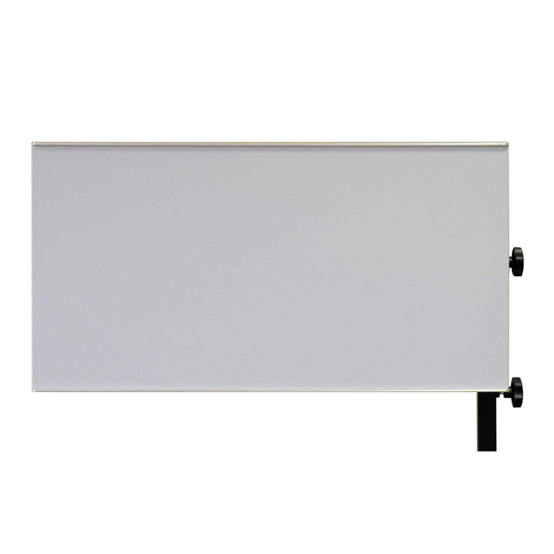 - Tischplatte: kunstharzbelegt uni-hellgrau. Grösse: 77 x 40 cm, Längskanten aus Aluminiumprofil natureloxiert, 7 mm überstehend, schmalseitig mit 2-mm ABS-Kante hellgrau