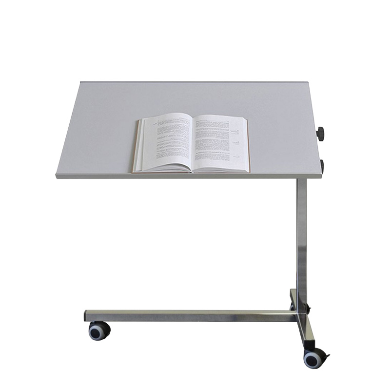 Das Betttisch-Modell "Spital" ist speziell für den Einsatz im Spitalumfeld konzipiert. Es zeichnet sich durch eine besonders einfache Anwendung aus. Der Betttisch ist höhenverstellbar. Die Tischplatte ist im 10°-Raster abschwenk- und arretierbar. Sowohl Höhenverstellung als auch Tischabschwenkung werden mittels ergonomischem Sterngriff sicher fixiert. Somit kippt die Tischplatte auch bei stärkerer Belastung nicht selbständig ab.