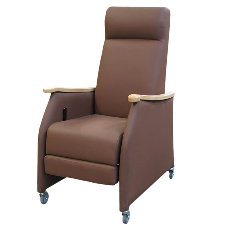 - Rollen und Fussstütze lassen sich manuell mittels Körperdruck in die Liegeposition verstellen.