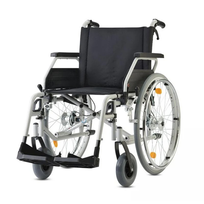 Das Rollstuhlmodell Eco ist ein faltbarer Standardrollstuhl mit abschwenkbaren Beinstützen und hochklappbaren Fussplatten. Das Modell ist mit oder ohne Trommelbremse und in verschiedenen Sitzbreiten erhältlich. Produktdetails des Rollstuhles Eco