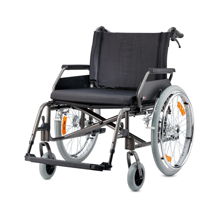 Econ XXL ist ein stabiler Rollstuhl mit einer Belastbarkeit von bis zu 250 kg. Bereits serienmässig bietet er hohen Komfort sowohl für Benutzerinnen und Benutzer als auch für die Begleitperson: Sitzkissen, Fussbrett und Stockhalter sind ebenso im Standard inbegriffen wie die Trommelbremsen, die höheneinstellbaren Schiebegriffe und eine Tasche im Rücken. Produktdetails des Rollstuhles Econ XXL: