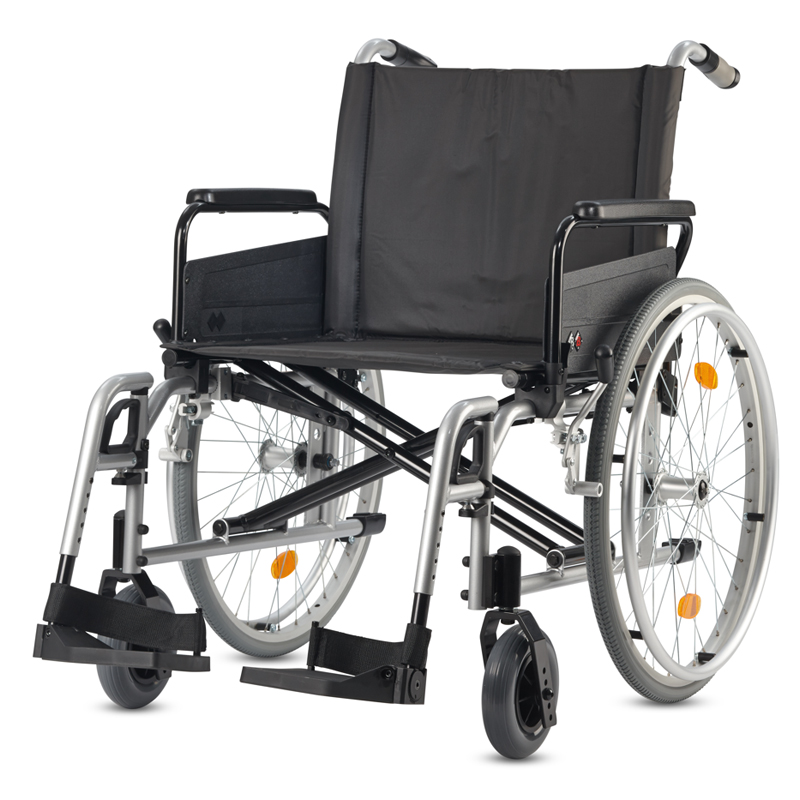 Der Rollstuhl Pyro Light XL ist durch seine Doppelkreuzstrebe extrem belastbar und trägt problemlos bis zu 170 kg. Produktdetails des Rollstuhles Pyro Light XL: