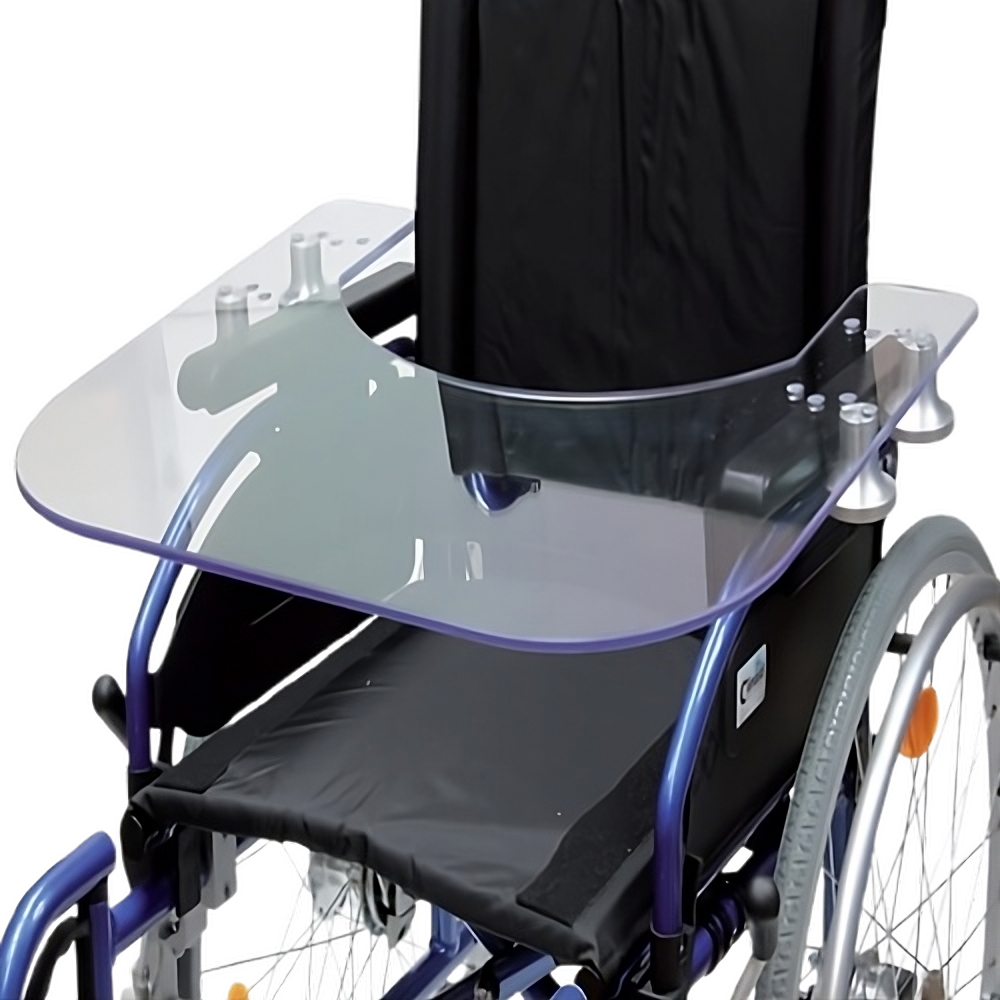 Ein Therapietisch Haba für Rollstühle bis zu einer Sitzbreite von 50 cm aus unzerbrechlichem Polycarbonat bietet eine besonders hohe Sicherheit und Haltbarkeit, was ihn ideal für den intensiven Gebrauch macht.Das stabile Design sorgt dafür, dass der Tisch auch bei kurzen Armlehnen fest und zuverlässig an seinem Platz bleibt. Diese Eigenschaften ermöglichen den Nutzern eine komfortable und sichere Nutzung des Tisches für verschiedene therapeutische und alltägliche Aktivitäten. Produktdetails des Therapietisches Haba für Rollstühle: