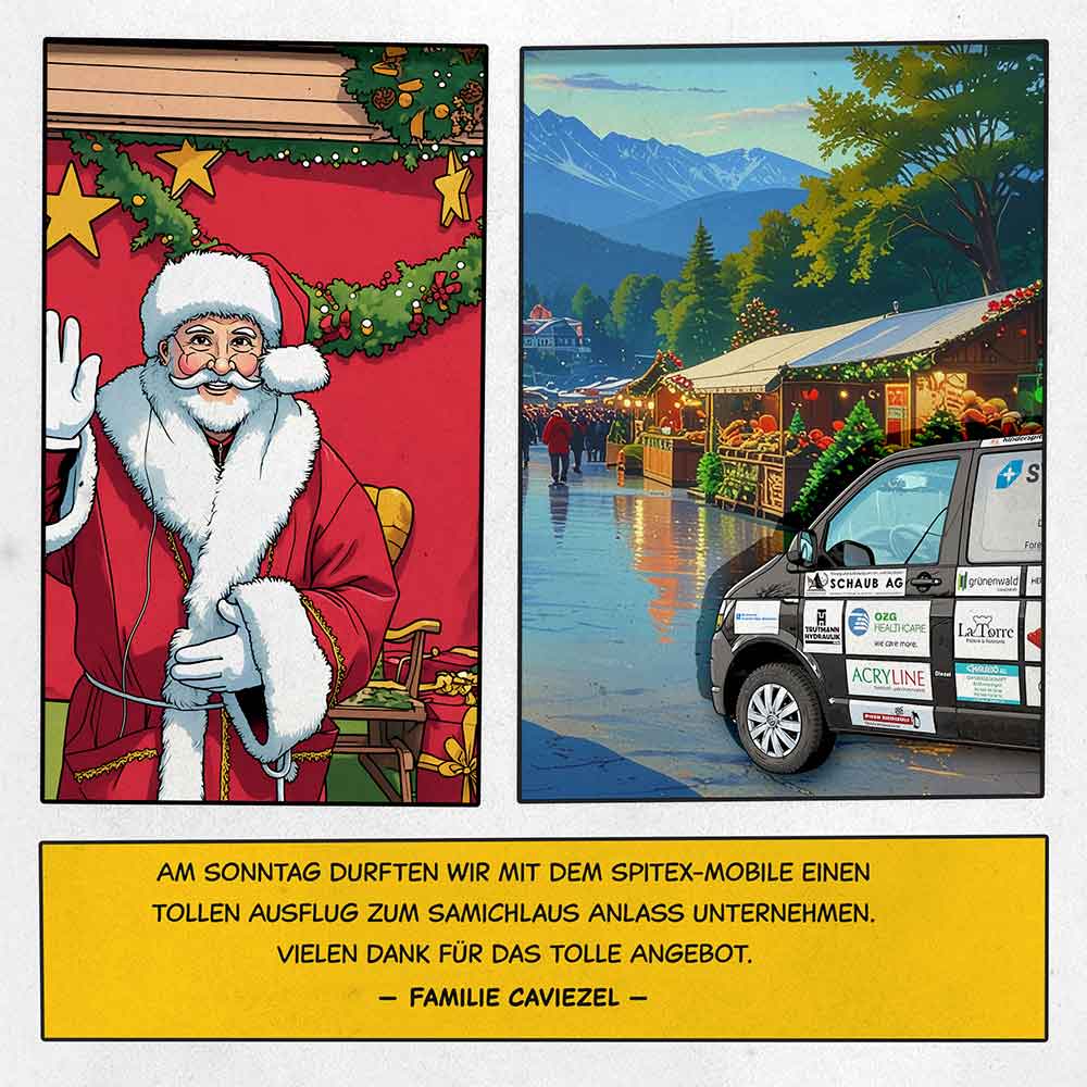 Familie Caviezel: "Am vergangenen Sonntag durften wir mit dem Spitex-Mobile einen tollen Ausflug zum Samichlaus Anlass unternehmen. Vielen Dank für das tolle Angebot."
