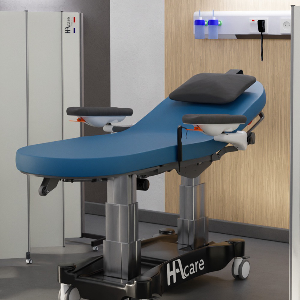 Die Behandlungsliege CLAVIA LSA mit verstellbaren Seitenteilen in drei Positionen und abnehmbarer Matratze ist speziell konstruiert für die Versorgung von Patientinnen und Patienten in ambulanten Einrichtungen. Sie ist schnell und intuitiv zu bedienen. Die sechs vorprogrammierten Positionen sind voll elektrisch verstellbar.