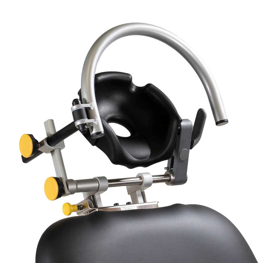 - Die patentierte ”HandsFree”- Kopfstütze ist bequem für den Patienten
