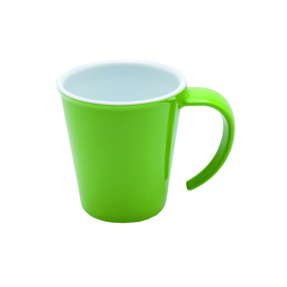 Die Mehrweg Tasse aus Melamin mit extra grossem, offenem Henkel eignet sich ideal für den Einsatz in Pflegeeinrichtungen. Die ergonomische Form erleichtert das Halten und Trinken für Personen mit eingeschränkter Handfunktion. Die Tasse ist leicht, äusserst robust, bruchsicher und lässt sich dank des offenen Henkels platzsparend stapeln. Der extra grosse Henkel erleichtert zudem das Greifen und Festhalten des Kaffeepotts.
