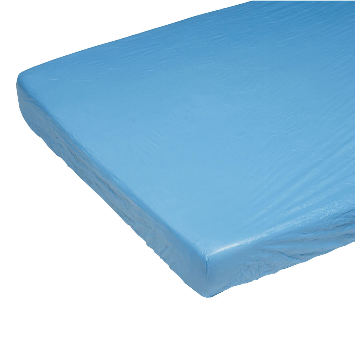 Einweg-Matratzenschutzbezug aus blauer Folie zur Inkontinenzversorgung in der Pflege. Der Bezug schützt die Matratze effektiv vor Nässe. Mithilfe des Gummizugs kann der Matratzenschutz sicher an allen Standardmatratzen befestigt werden. Produktdetails des Einweg-Matratzenschutzbezugs: