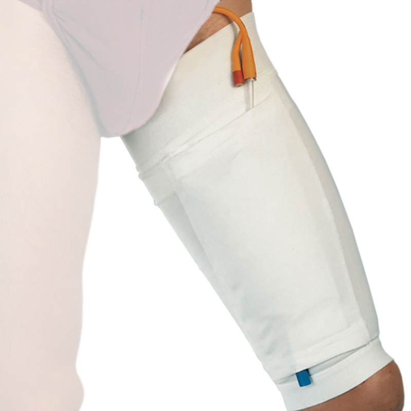 Die Beinbeutel-Halterung fixiert zuverlässig den Urin-Beinbeutel am Ober- oder Unterschenkel und sorgt dabei für optimalen Sitz und höchsten Komfort. Dank elastischer Fixierbänder und des elastischen Stoffes bleibt die Halterung sicher an Ort und Stelle, ohne die Blutzirkulation zu beeinträchtigen.Sie ist sowohl für den Oberschenkel als auch für den Unterschenkel erhältlich und eignet sich perfekt für den täglichen Gebrauch – für eine diskrete und sichere Anwendung. Produktdetails der Beinbeutel-Halterung: