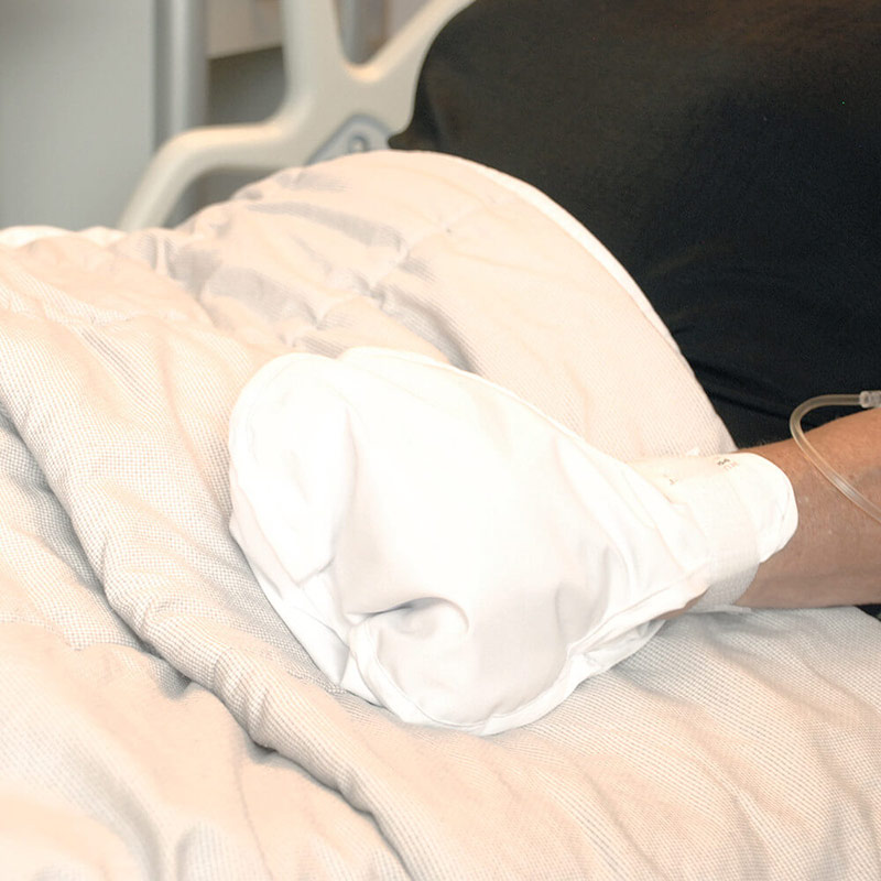 - Verhindert die Manipulation an Infusionen, Kathetern, Drainagen, Wunden etc.