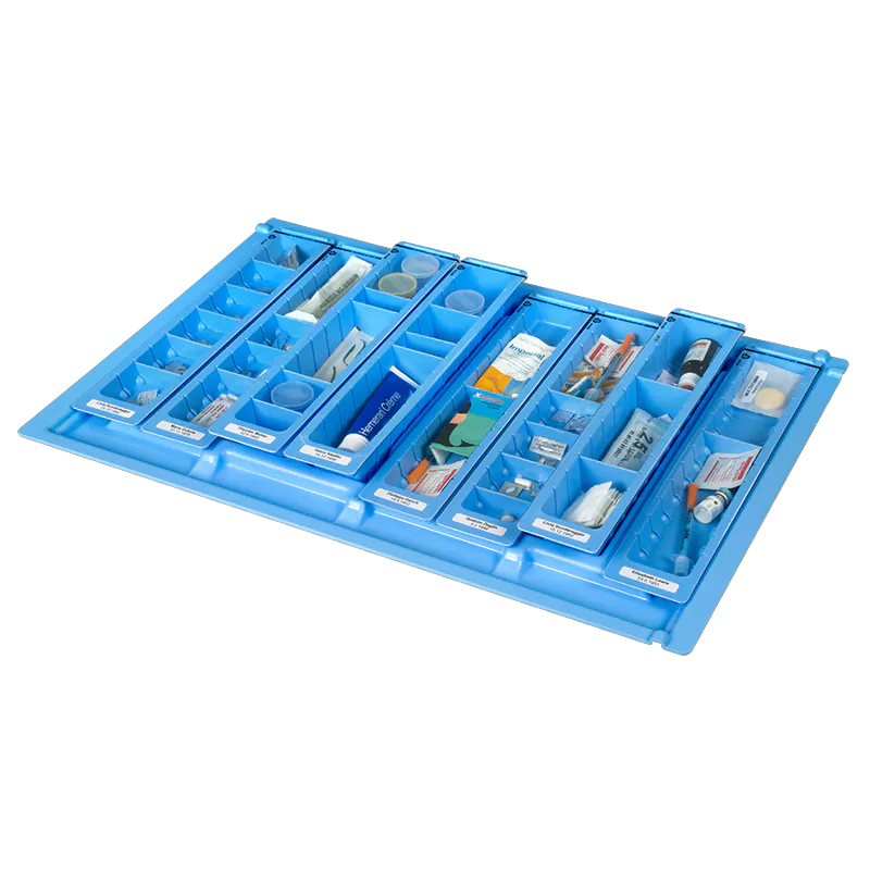 Das Lagertablett für 8 grosse Medi-Dispenser bietet eine strukturierte und platzsparende Möglichkeit zur Lagerung und Organisation von Medikamentendosiersystemen. Es ist ideal geeignet für den Einsatz in Alten- und Pflegeheimen und Spitälern. Der achte Dispenserplatz kann flexibel genutzt werden – entweder zur Vorbereitung für den kommenden Wochenzyklus oder zur Aufbewahrung von Reservemedikamenten. Produktmerkmale des Lagertabletts für 8 Medi-Dispenser: