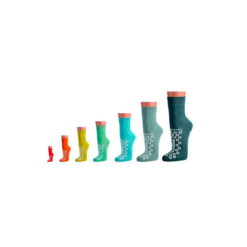 Die farbenfrohen Stoppersocken sorgen im Spital für ein maximales Mass an Sicherheit Ihrer Patientinnen und Patienten. Hergestellt aus weichem, komfortablem Frottee passen sich die Socken jedem Fuss an. Durch rutschfeste Stopper-Noppen an der Ober- und Unterseite der Socken ist die Sicherheit auch beim Verdrehen der Socken gegeben.