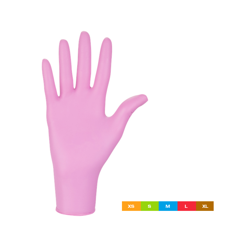 Hochwertige diagnostische puderfreie medizinische Nitrilhandschuhe in der Farbe Rosa. Die Untersuchungs- und Schutzhandschuhe aus Nitril bilden eine Barriere gegen Bakterien, Pilze und Viren (gemäss CE-Zertifikat für persönliche Schutzausrüstung der Kategorie III Typ B). Die Textur an den Fingerspitzen verbessert die Griffigkeit bei der Durchführung von Eingriffen, die Präzision erfordern.