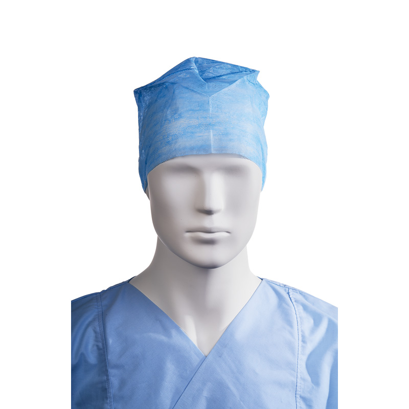 Schwesternhaube aus Viskose in blau oder grün zur Komplettierung der Schutzbekleidung für Personal im Spital, vor allem im OP - zum Schutz vor der Verbreitung von Infektionserregern.
