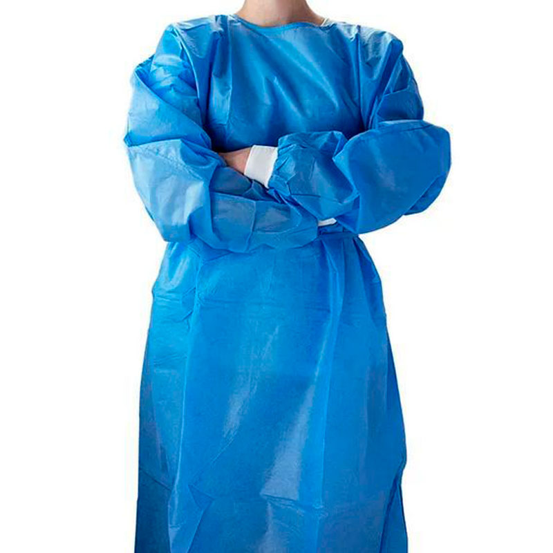 Knielanger Schutzkittel aus SMS-Vlies in der Farbe Blau mit angenehmen Ärmelbündchen, ideal geeignet als als Schutzkleidung in verschiedenen Abteilungen im Spital oder in Laboren.